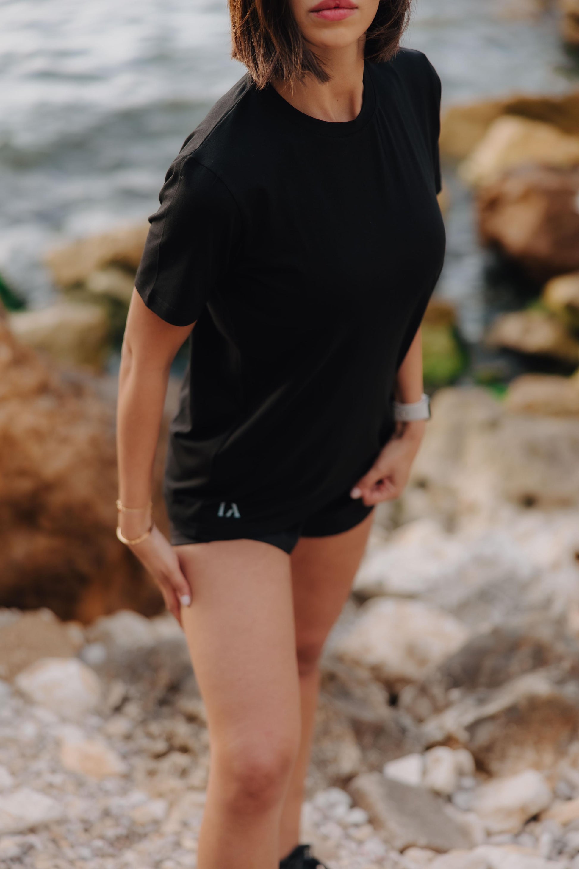 The Form T-Shirt by ÏA is cut from smooth French terry, made to hold its structure while moving with her. Understated in design, elevated in feel. She wears it to reset, to arrive, or to simply be.